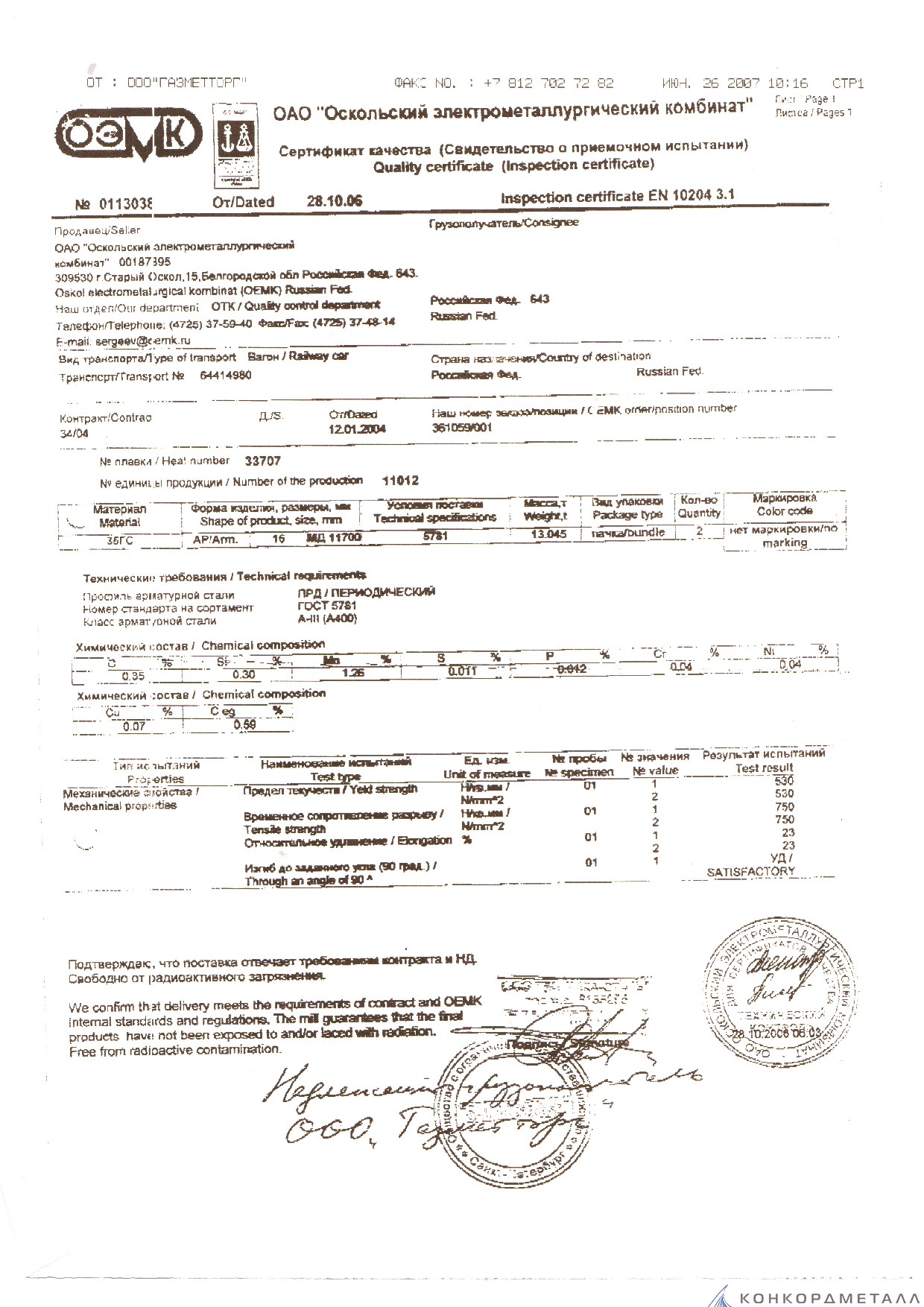 С каждой товарной позицией мы предоставляем все сертификаты и паспорта качества, а также товарно-транспортную накладную.