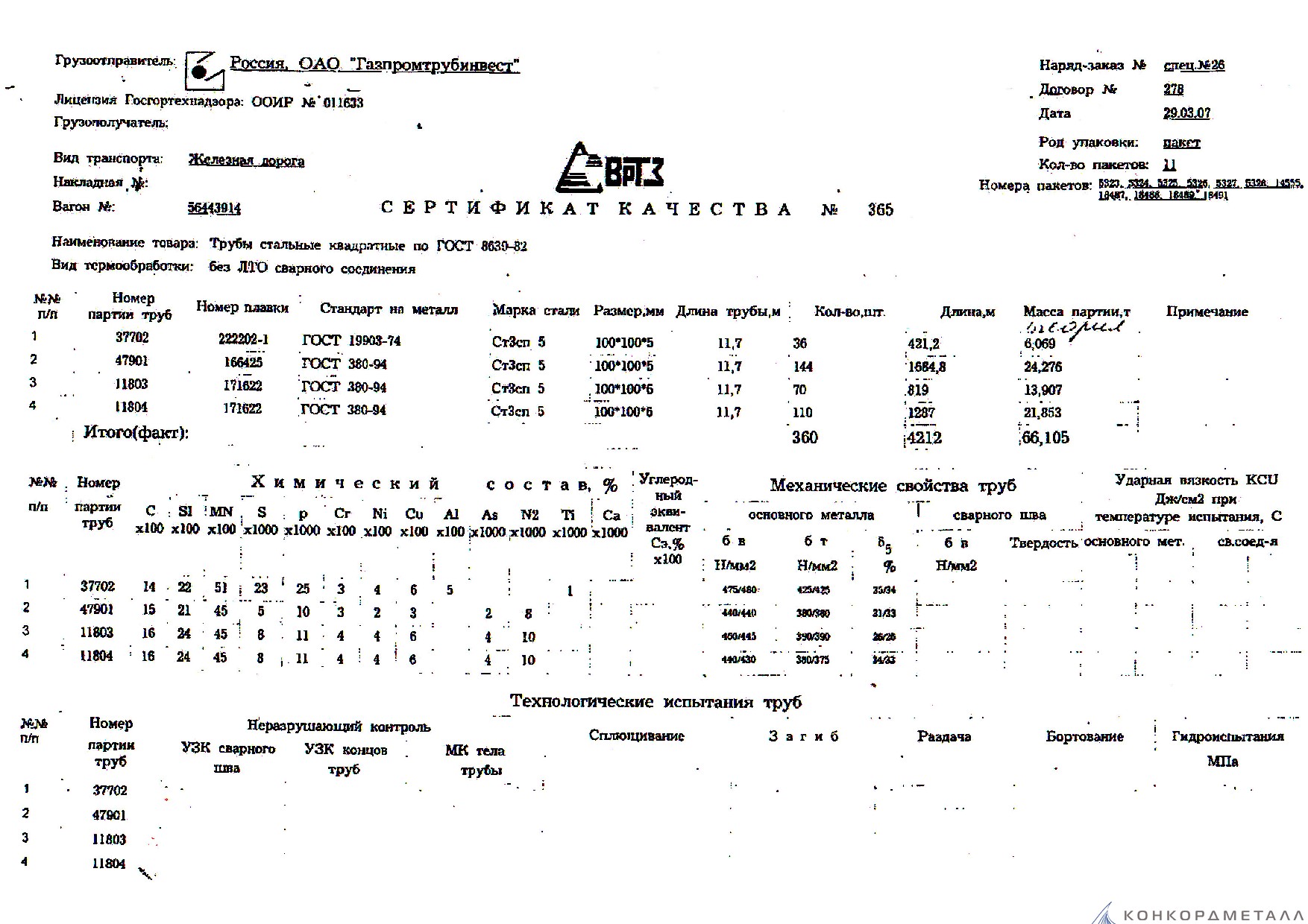 С каждой товарной позицией мы предоставляем все сертификаты и паспорта качества, а также товарно-транспортную накладную.