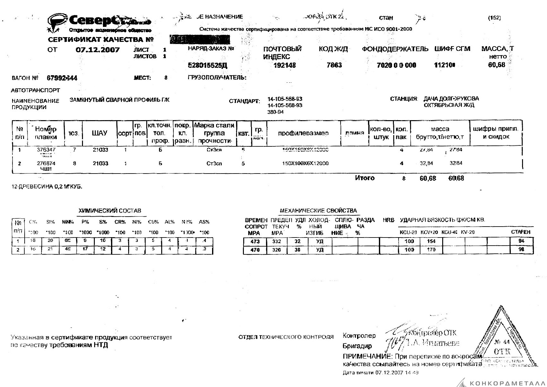 С каждой товарной позицией мы предоставляем все сертификаты и паспорта качества, а также товарно-транспортную накладную.