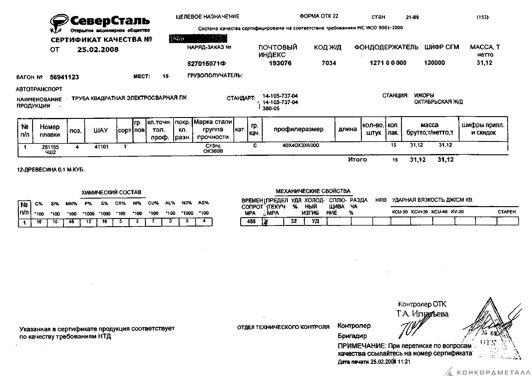 С каждой товарной позицией мы предоставляем все сертификаты и паспорта качества, а также товарно-транспортную накладную.