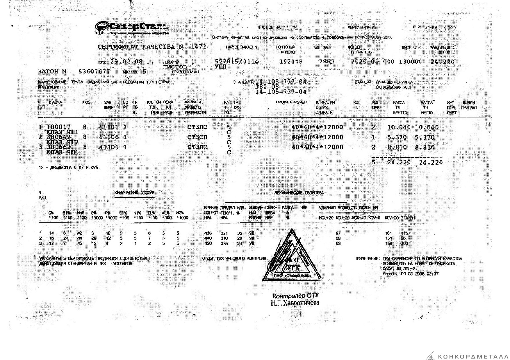 С каждой товарной позицией мы предоставляем все сертификаты и паспорта качества, а также товарно-транспортную накладную.