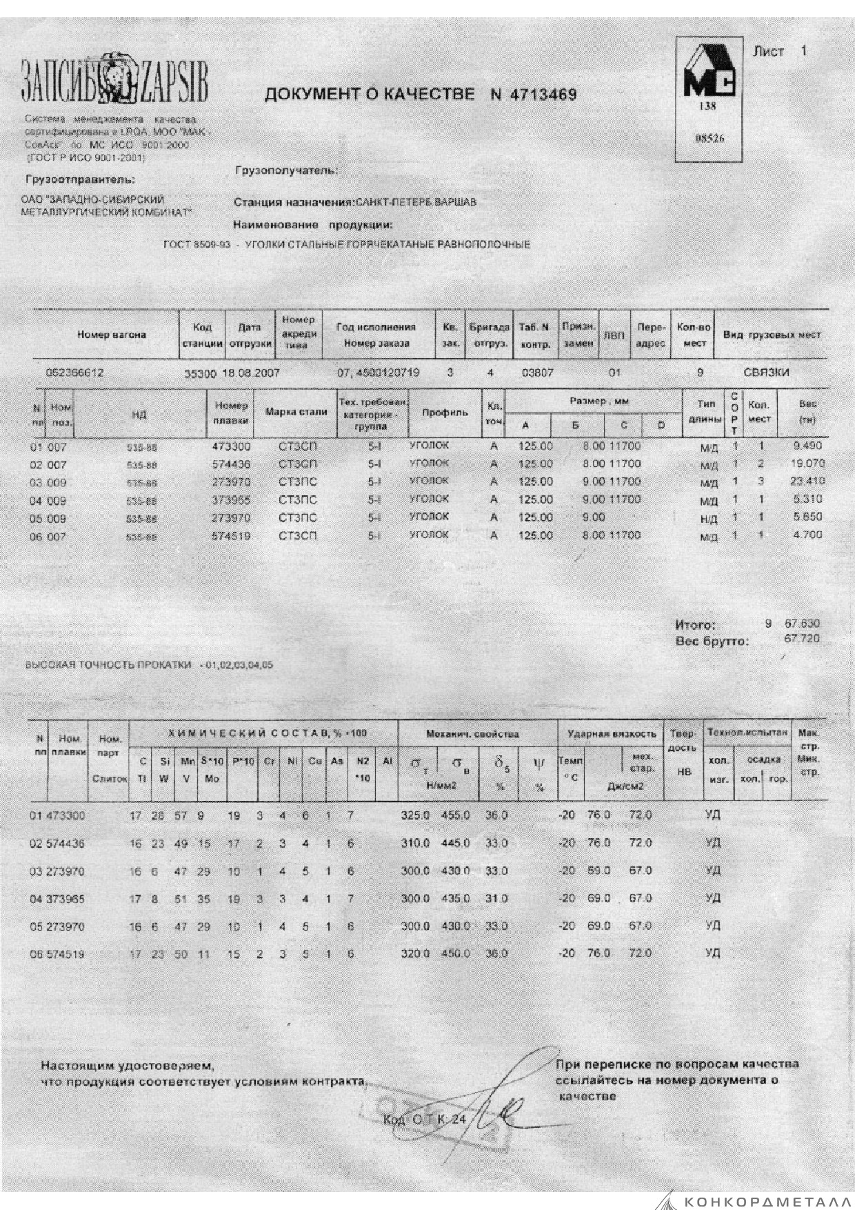 С каждой товарной позицией мы предоставляем все сертификаты и паспорта качества, а также товарно-транспортную накладную.